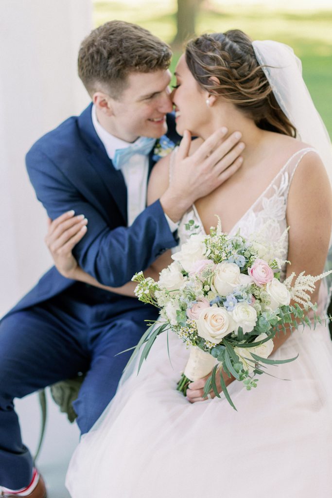 Melissa and Jake’s wedding took place at the Gordan Hall venue in Dexter, MI. Their choice of a light pink/blue color palette looked so perfect with the charming white house!! I loved using one of the white walls as a portrait location, it felt like we were down south in Charleston. Melissa and Jake were truly a dream couple to work with and it’s so evident that they are meant to be together!! Scroll down to see some of my absolute FAVORITE candid moments from this day!